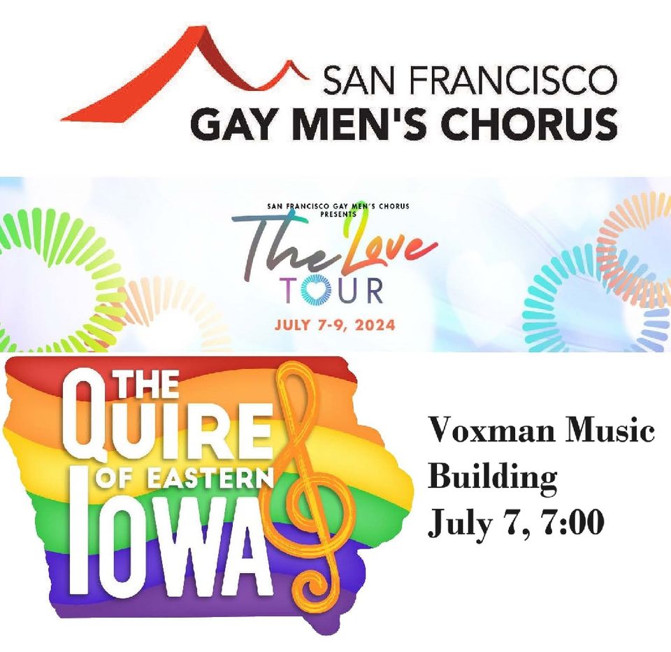 In conjunction with the San Francisco Gay Men’s Chorus, the Quire of Eastern Iowa performed a joint concert at Voxman Music Building (301 S Clinton St, Iowa City) on Sunday, July 7th at 7:00 PM!