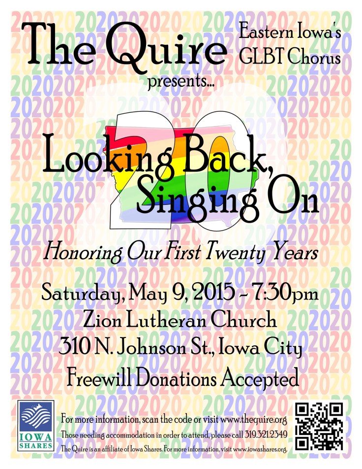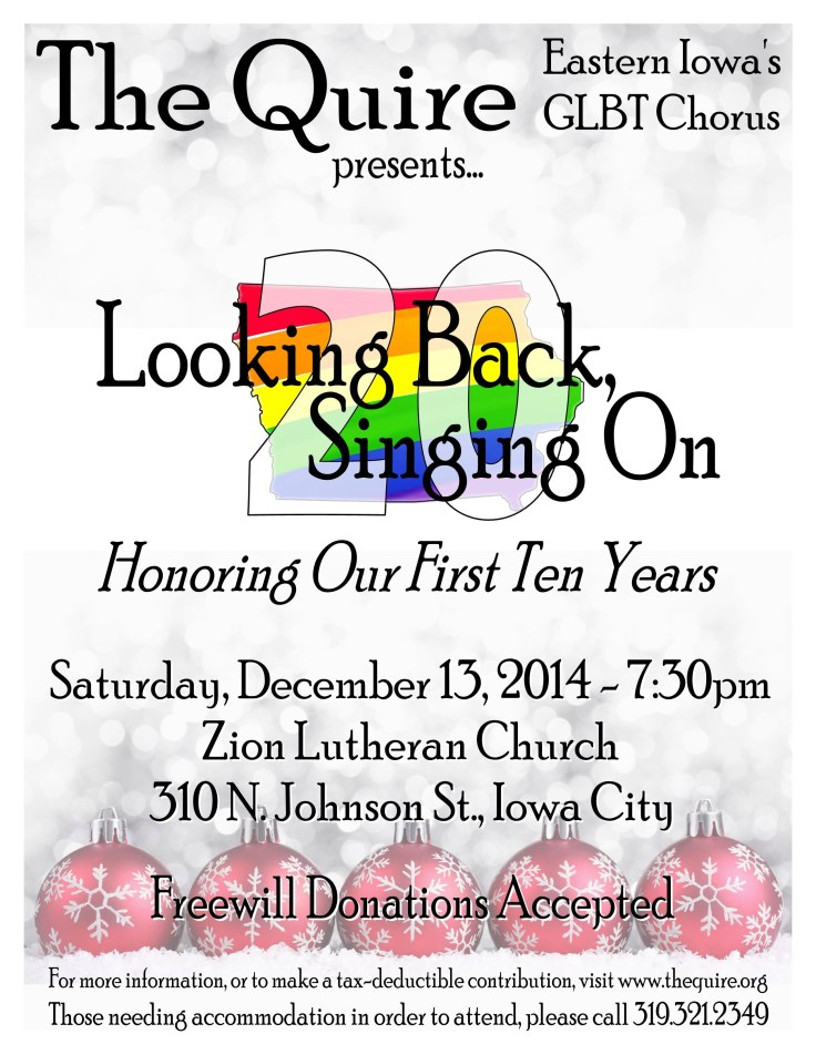 Over the past twenty-five years, The Quire has been excited, challenged, and honored to sing a wide variety of music. There has been current music, and music from times long gone. Mostly, we’ve performed in English, but we’ve also enjoyed opportunities to sing in Spanish, Hebrew, French, Latin, German…and even Xhosa and Zulu!