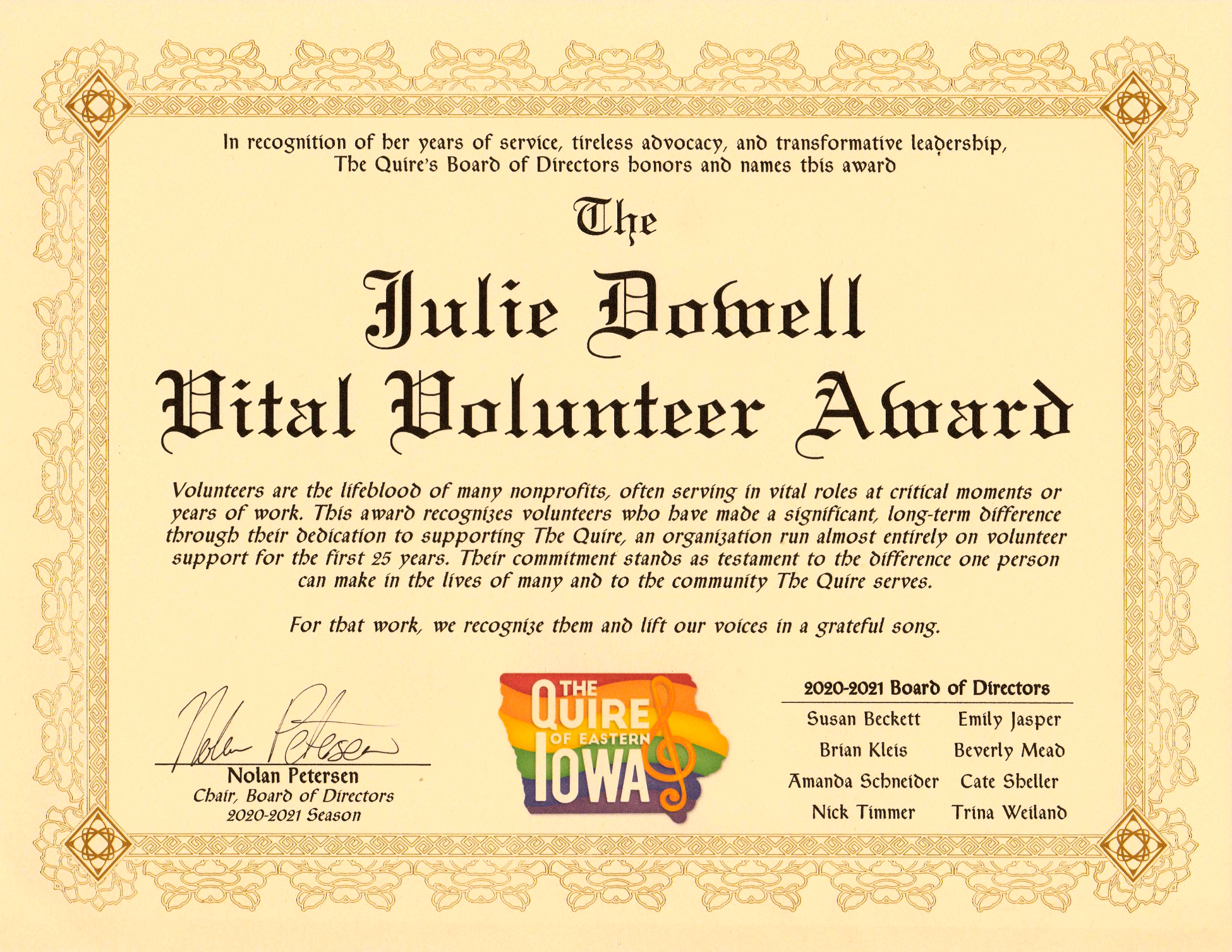 Donations listed as of 5/14/2022. Please send corrections or questions to Nolan Petersen, Nolan@TheQuire.org